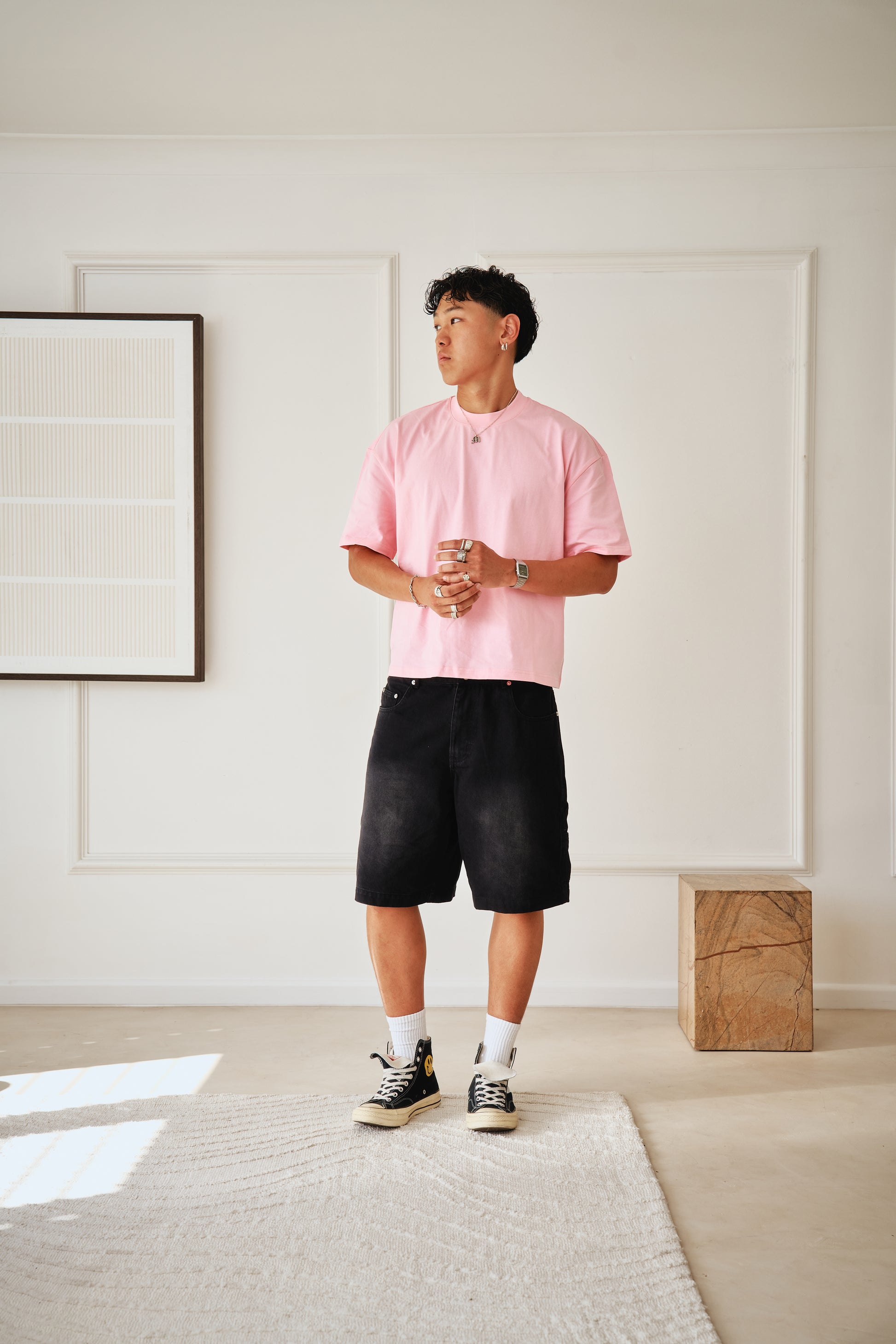 A true wardrobe essential, this Pink Classic Crew neck tee is the ultimate versatile piece. Its clean lines and tailored fit make it perfect for layering or wearing on its own. The heavyweight 230gsm cotton provides structure while maintaining a soft touch against the skin.