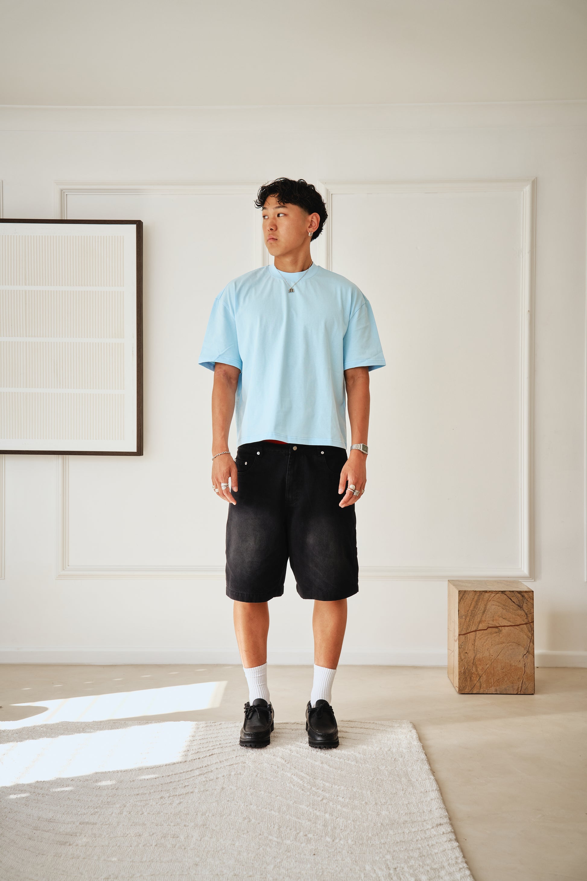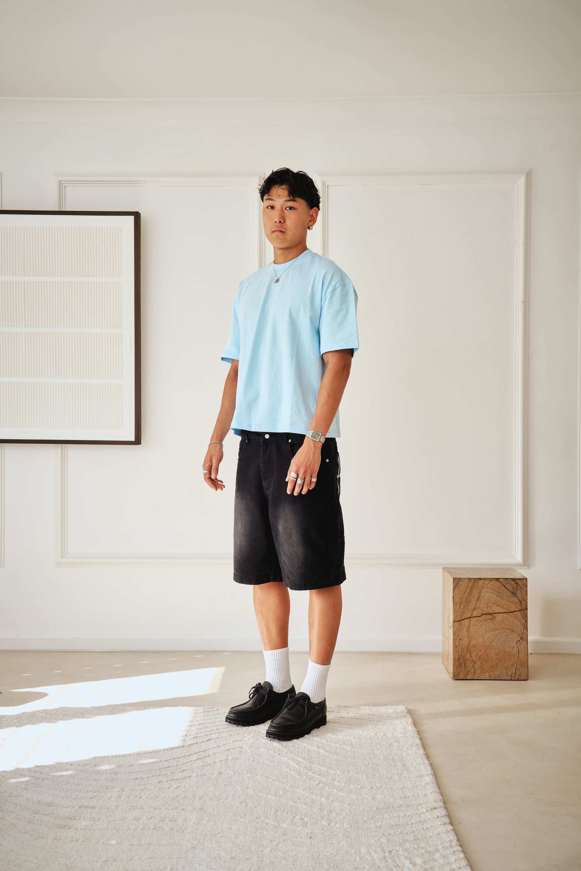 A true wardrobe essential, this Sky Blue crew neck tee is the ultimate versatile piece. Its clean lines and tailored fit make it perfect for layering or wearing on its own. The heavyweight 230gsm cotton provides structure while maintaining a soft touch against the skin.